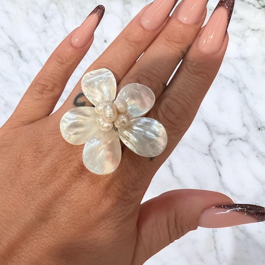 Anello fiore in madreperla